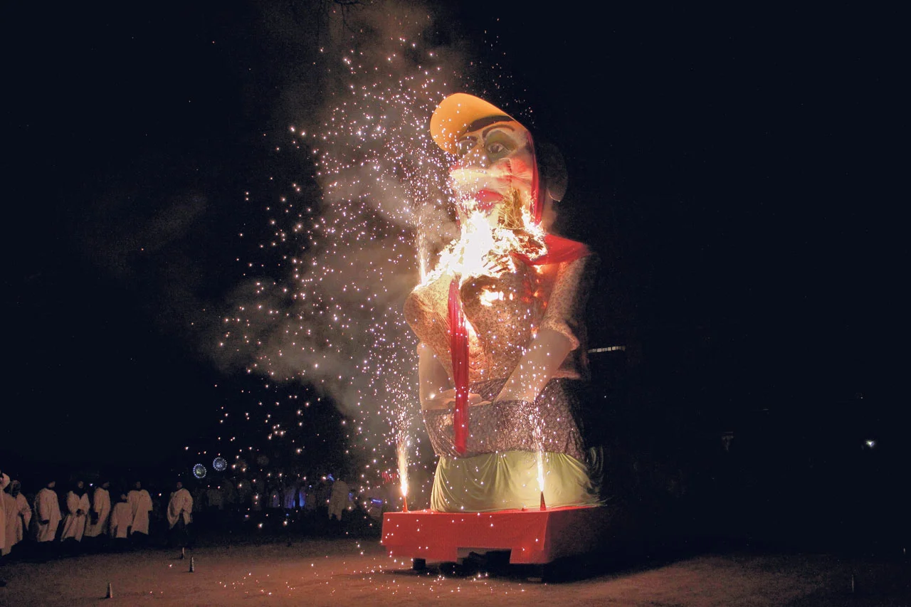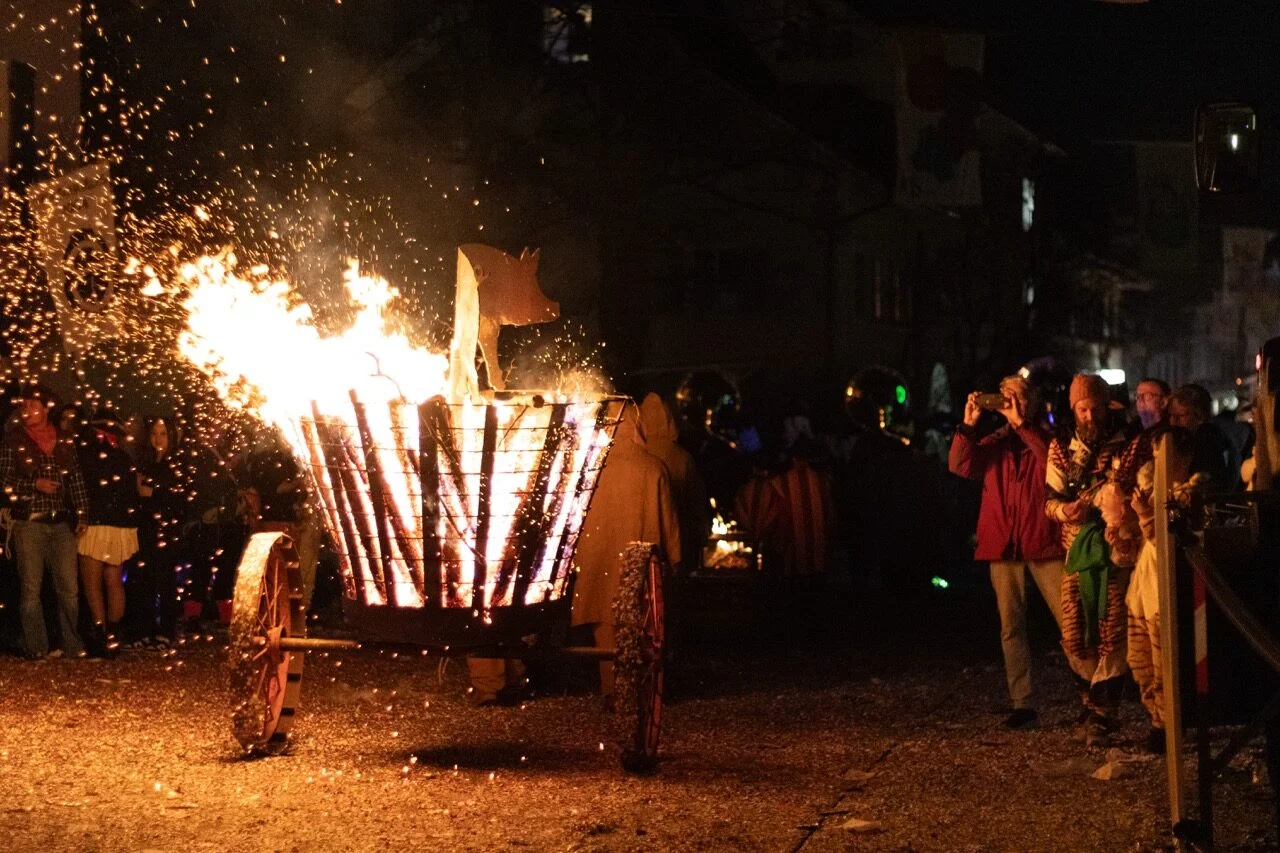 Dieser Brauch wurde vor zig Jahren eingeführt, da man sich zu jener Zeit entschloss, die Fasnacht noch etwas zu verlängern und so die vielleicht farbigste, wirrste und fröhlichste Zeit des Jahres gebührend zu verabschieden. Die Verbrennung des mittlerweile gigantischen Chluris erfreut sich einer Heerschar von BesucherInnen und ist für so Manchen auch das heimliche Highlight der hiesigen Fasnacht.