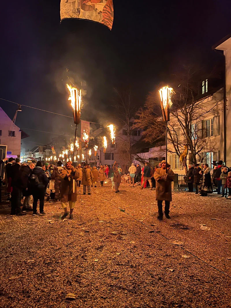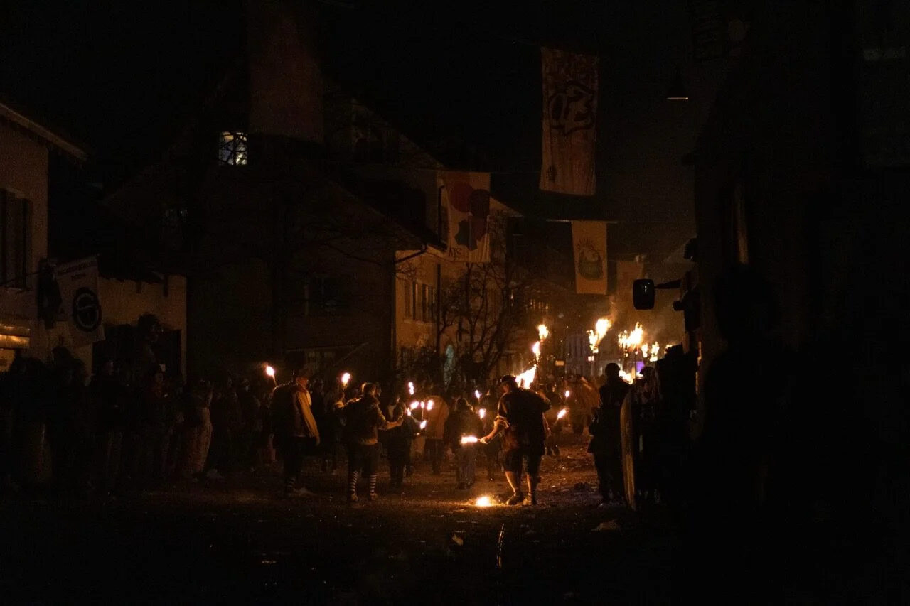 Bis in den späten Abend bleiben die Strassen und Plätze belebt von vielen Zuschauern und Aktiven. Ein fröhliches und buntes Durcheinander prägt dieses Strassenfest, welches fliessend in das nächste Highlight übergeht - den Fackelumzug.