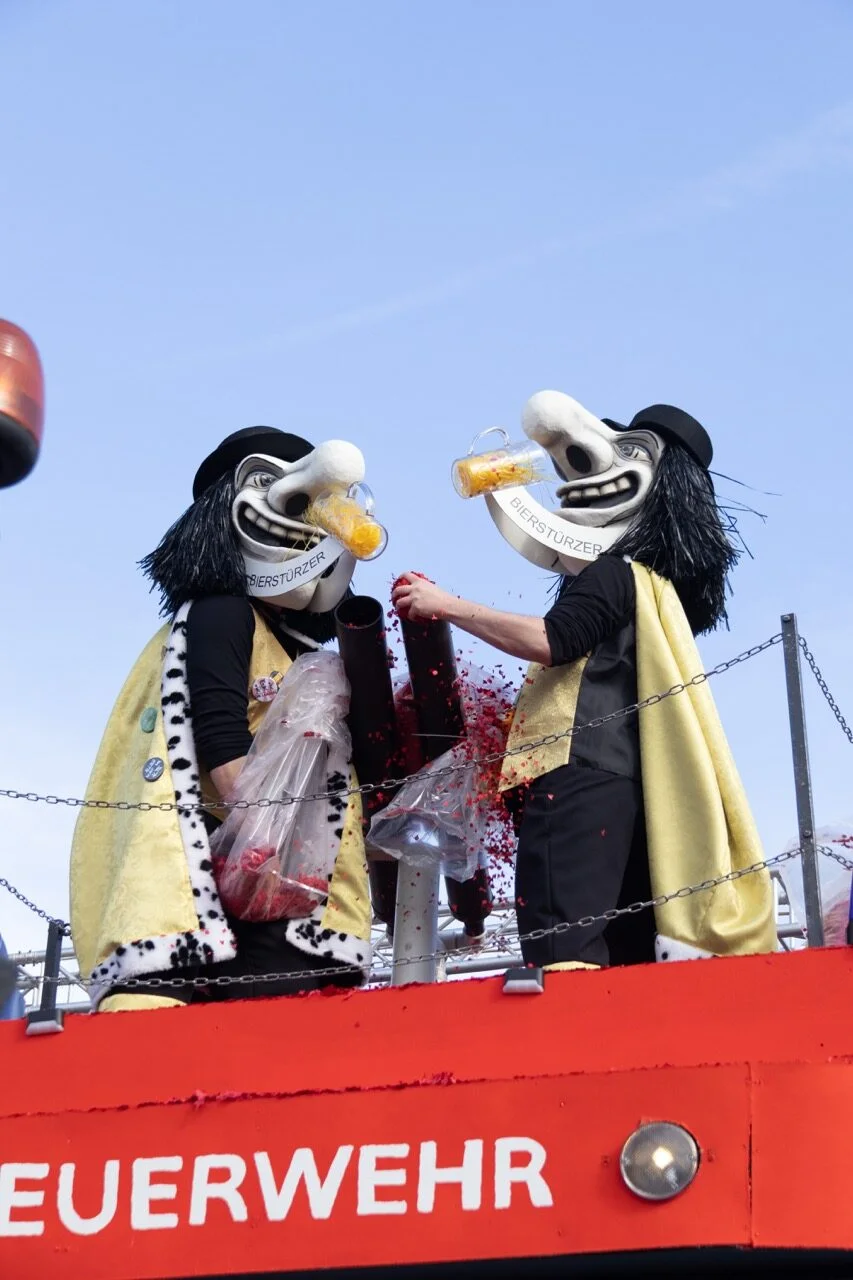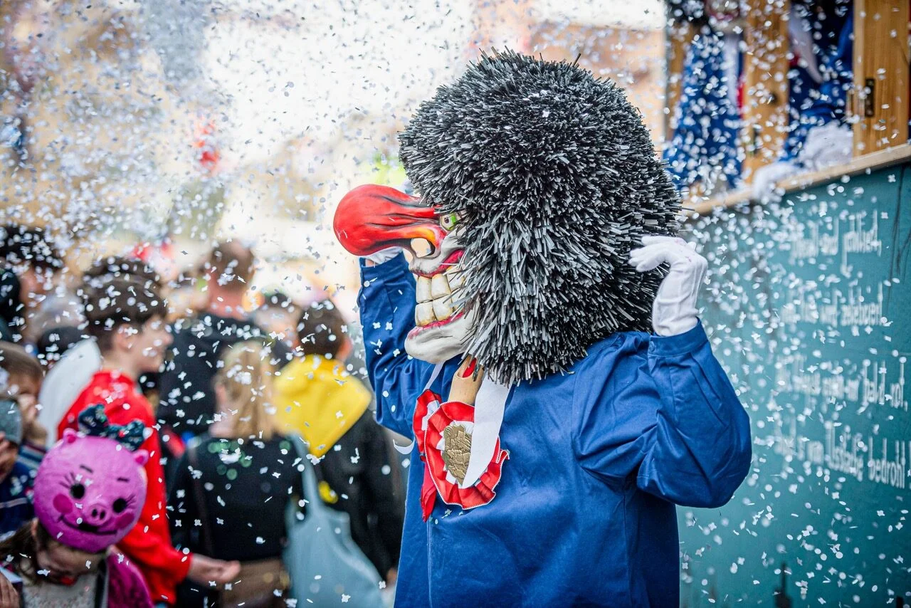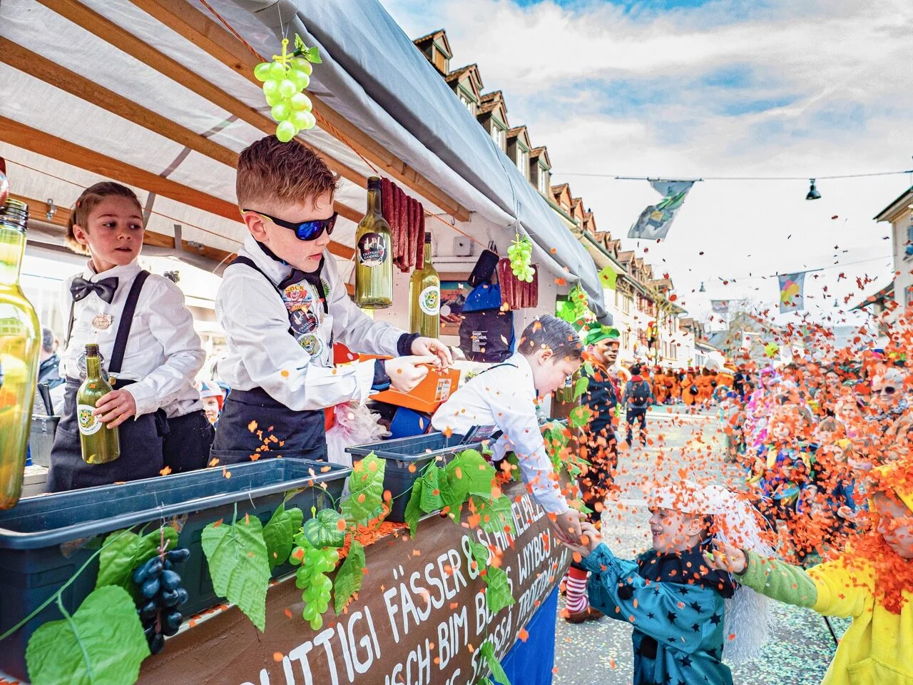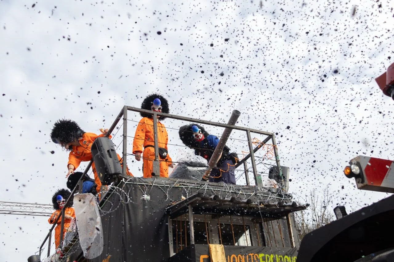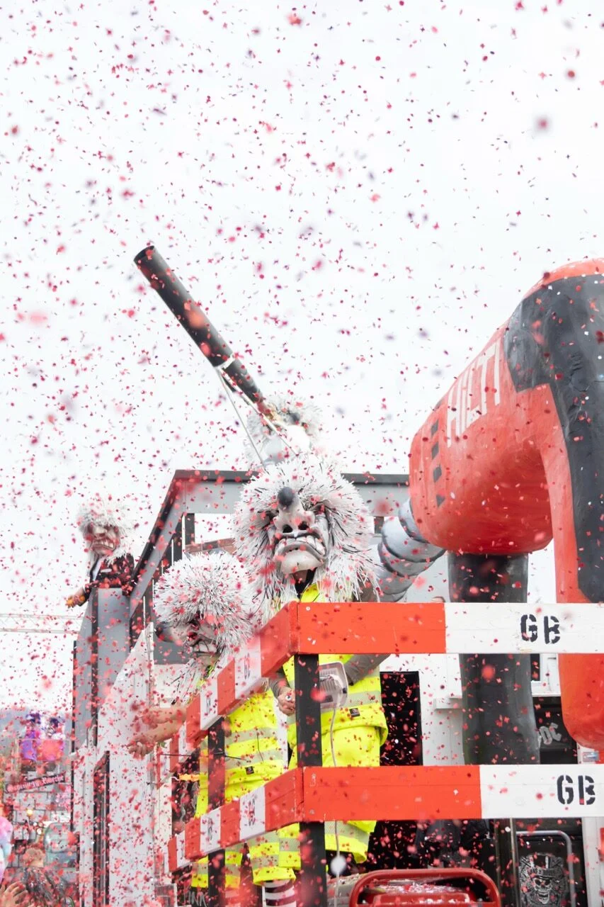 Im Anschluss an den Kinderball zieht der Kinderumzug durchs Dorf. Seinen Höhepunkt erreicht dieser mit der Konfettischlacht vor dem Cheesmeyer.