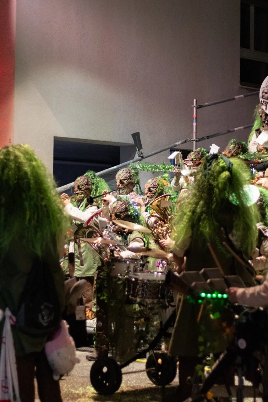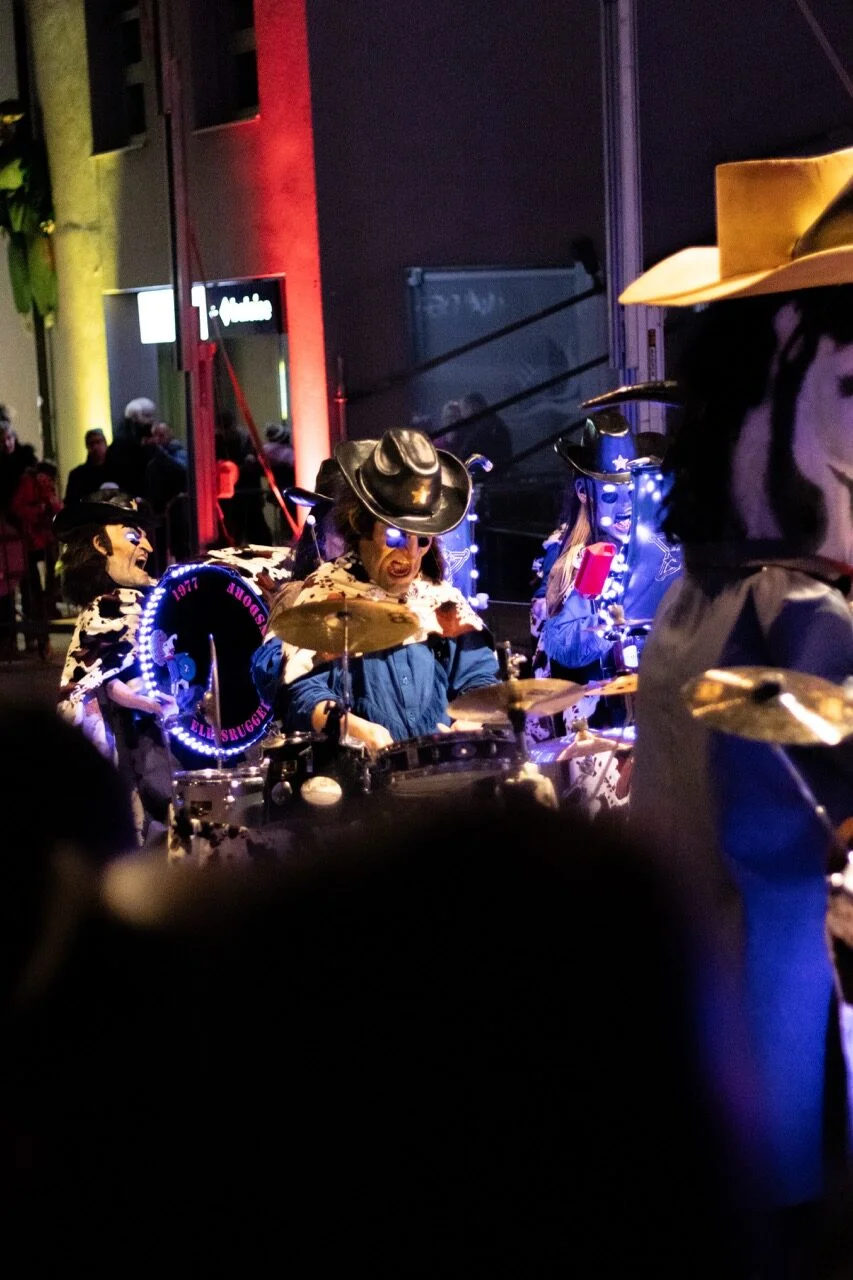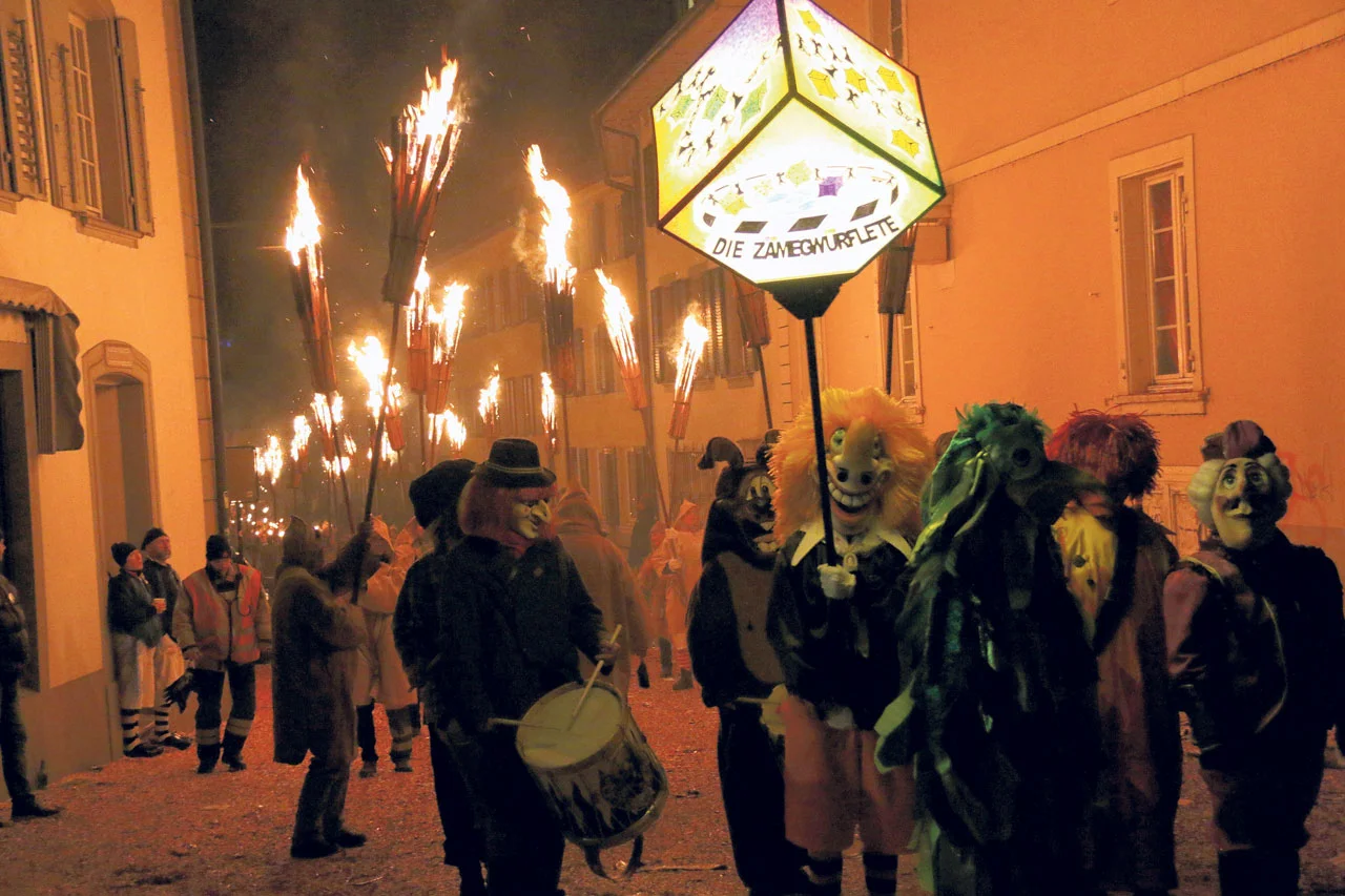Mit klassischen Laternen der Cliquen, flackernden Chienbesen, Feuerwagen und blinkenden Umzugswagen zieht ein Lichtermeer durch die Rheinfelderstrasse hinauf Richtung Begegnungszone. Mit Begleitung von Guggenmusik zieht der Umzug über die Bahnhofsstrasse Richtung Postplatz.
