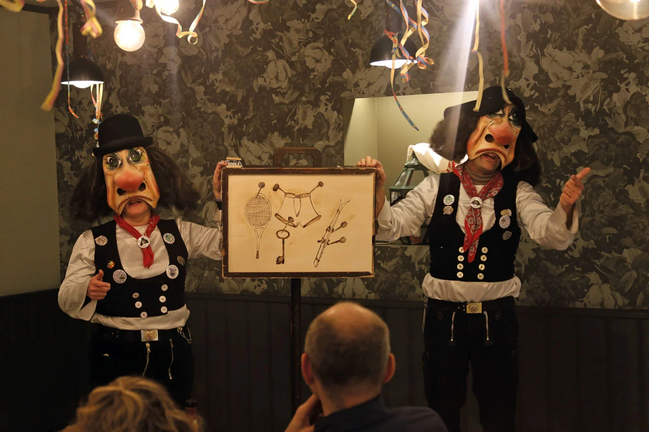 Bewaffnet mit allerlei Utensilien, Esswaren, Getränken und fahrbaren oder nichtfahrbaren Untersätzen unterhalten sie die Gäste in den Restaurants und werden begleitet von viel Gelächter, sei es aus Freude oder Schadenfreude, weil dem Tischnachbarn gerade eine neue Frisur gezaubert wird. An diesem Abend kann einem Allerlei widerfahren und man darf auf einfach Alles gefasst sein.